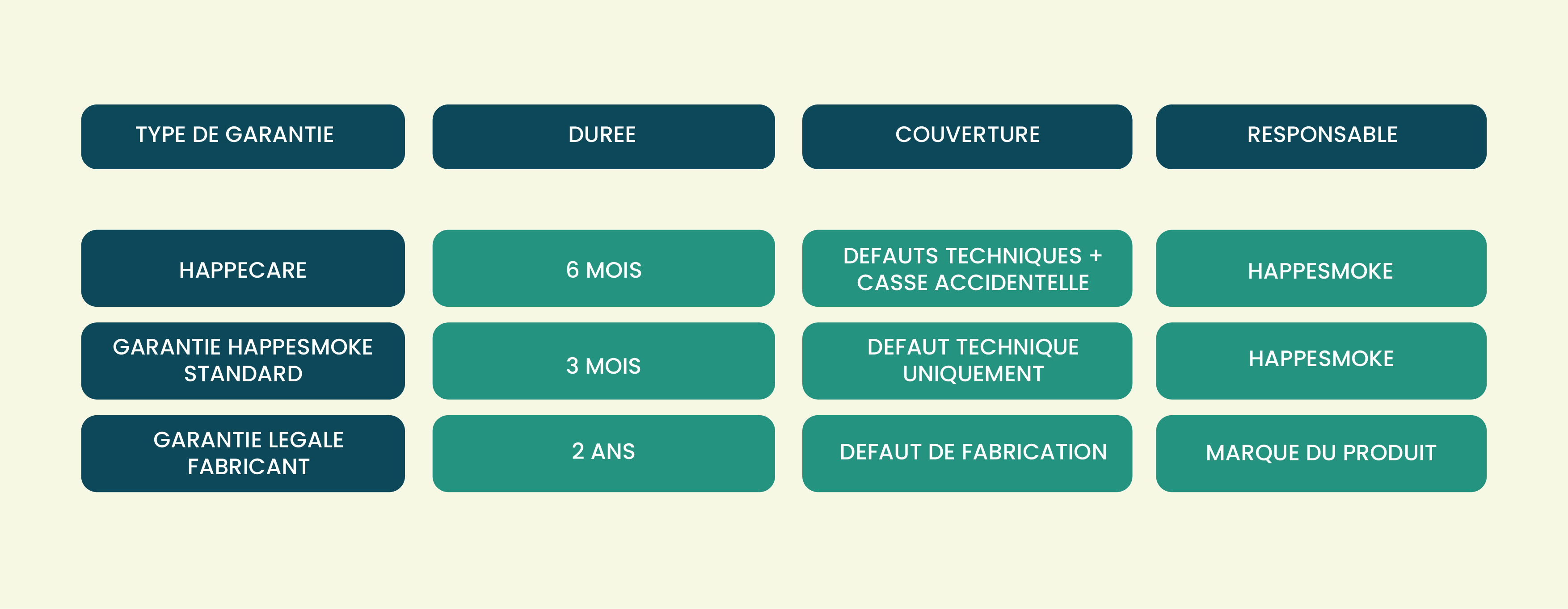 👉 Important : le service HAPPECARE est disponible exclusivement dans les magasins HappeSmoke. Il n’est pas proposé sur le site web.
